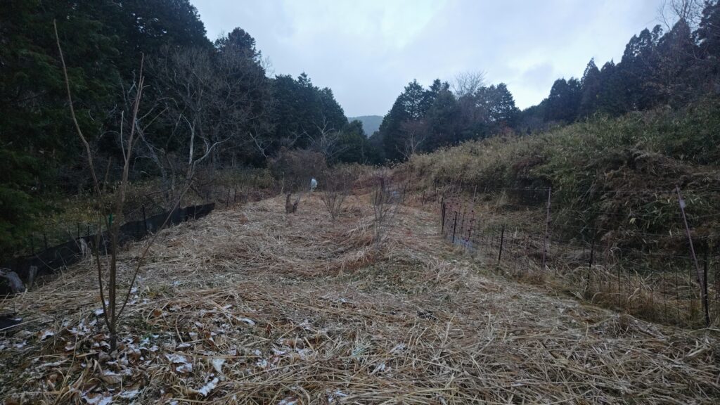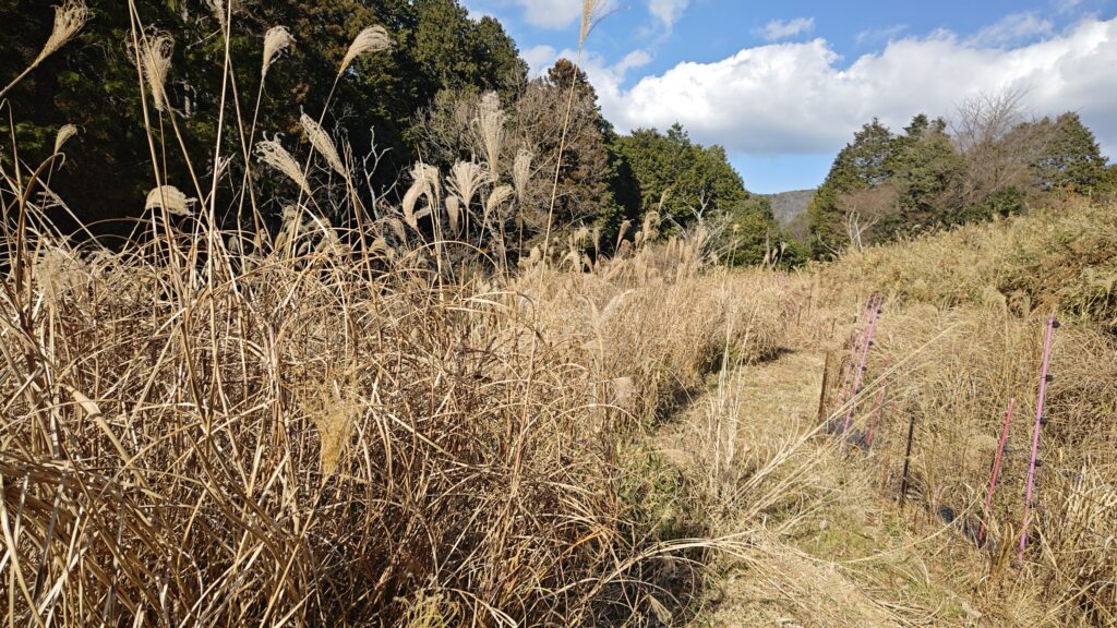 というわけで、冬が来るまでは、圃場内の通路と、栗の木の樹冠下は、こまめに刈りますが、